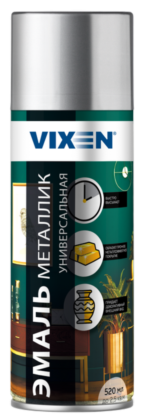 VX19110 VIXEN Эмаль металлик универсальная, хром, аэрозоль 520 мл