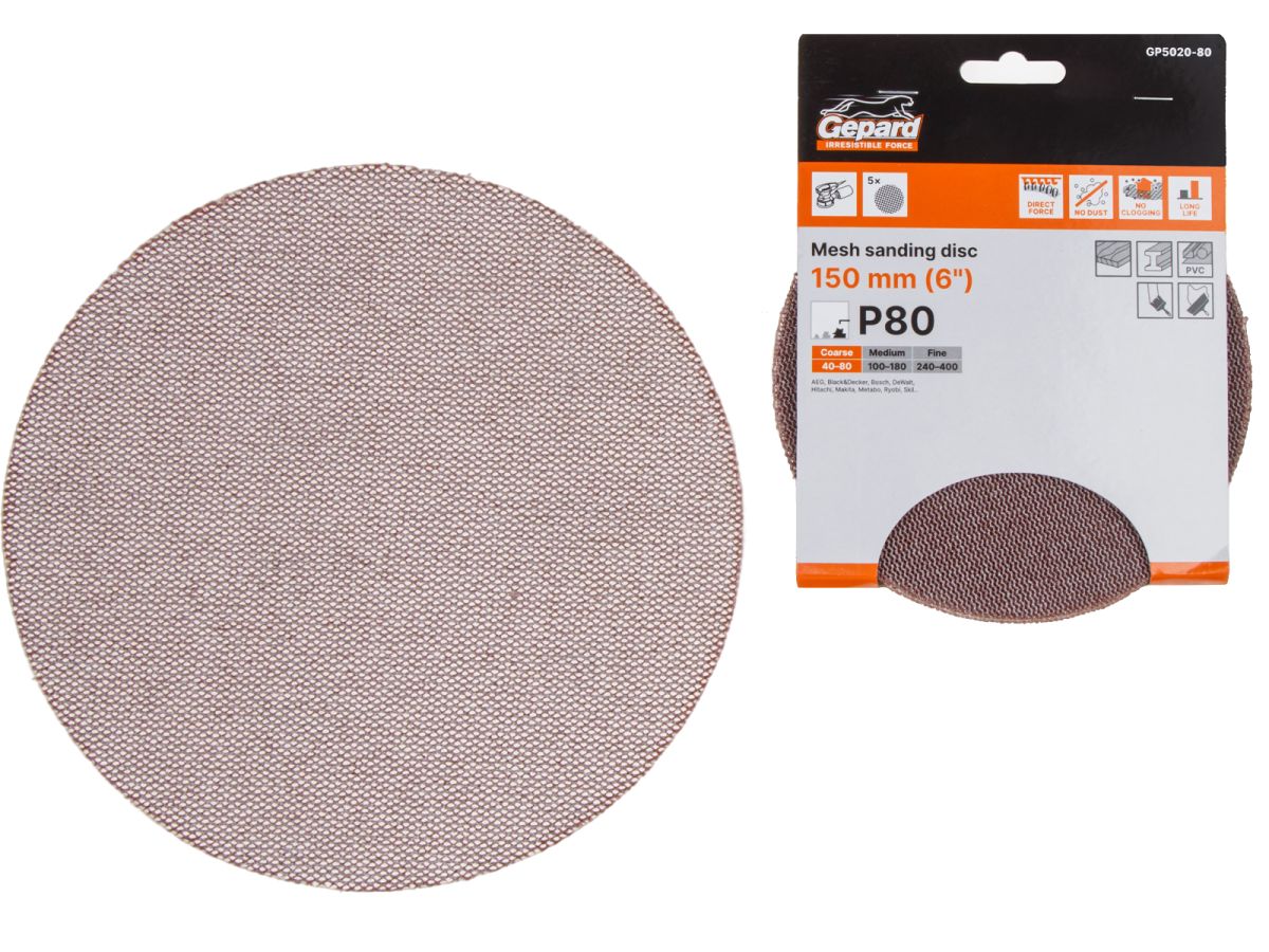 Шлифлист 150мм круг Р80 сетка, самосцепл. 5шт. GEPARD (GP5020-80)