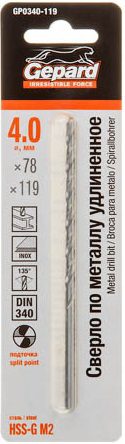 Сверло по металлу ц/х 4.0х78х119 мм удлиненное HSS-G GEPARD