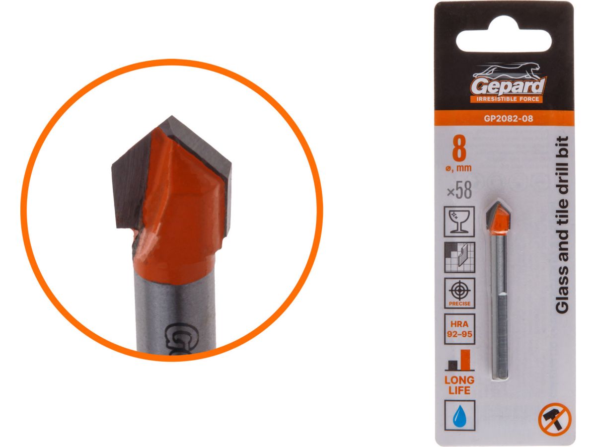 Сверло по кафелю/стеклу 8×58 мм трехгр. хвостовик GEPARD (GP2082-08)