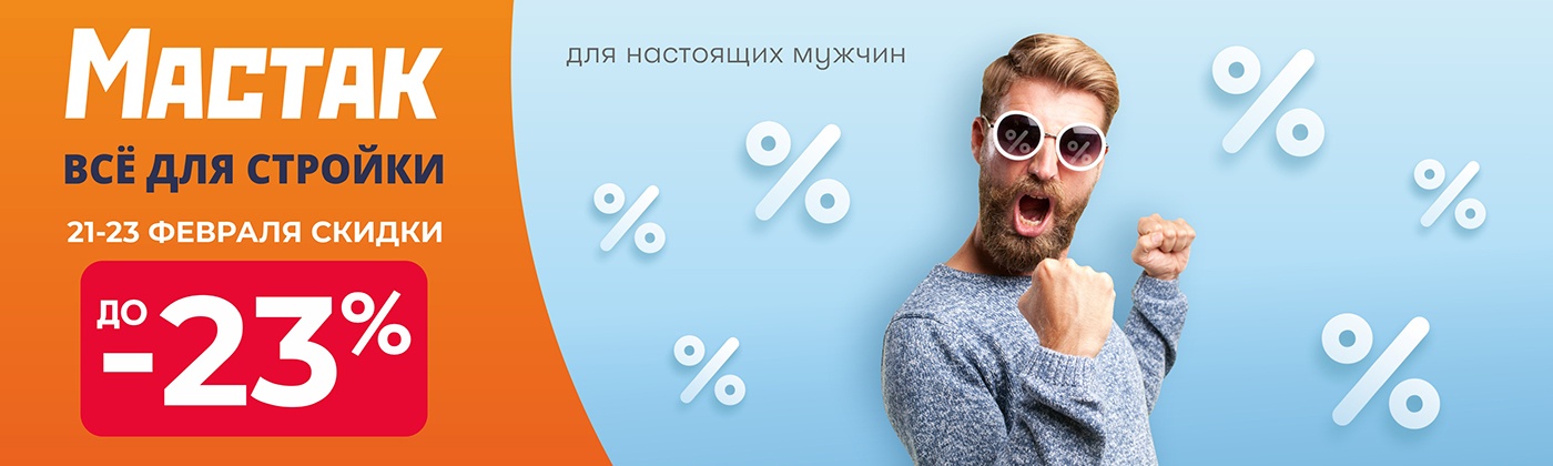 В честь праздника сеть строительных магазинов МАСТАК, с 21 по 23 февраля, дарит вам скидки до 23%!