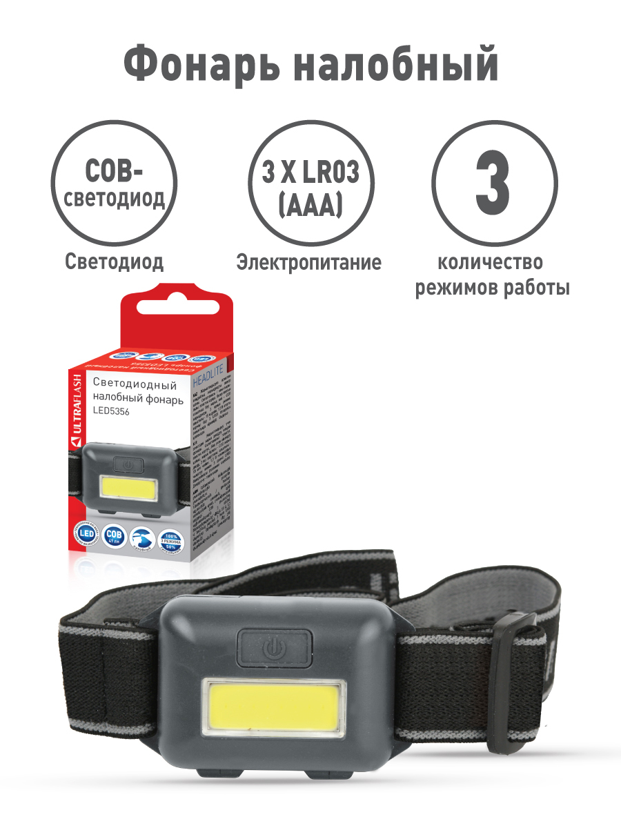 Ultraflash LED5356 (фонарь налобн, черн.,0,95Вт COB LED, 2 реж, 3XAAA, пласт, кор)