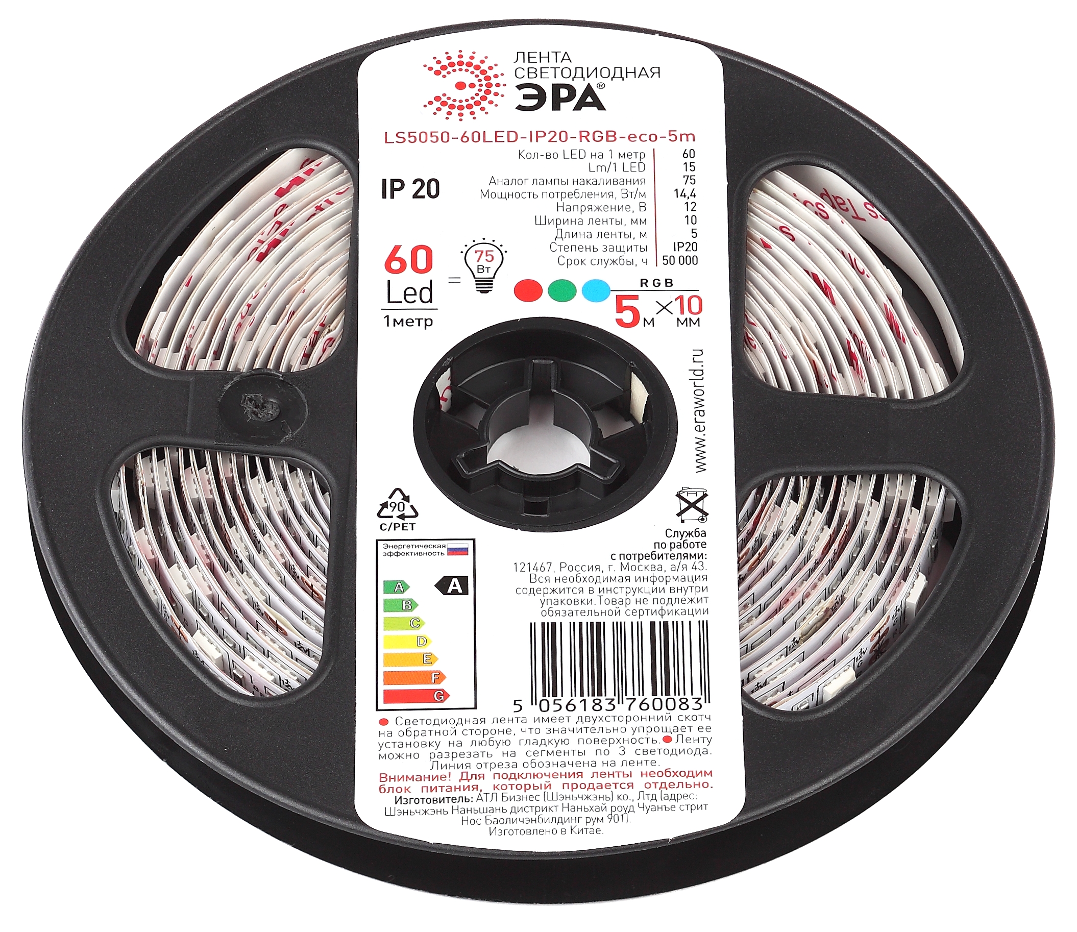 ЭРА Лента светодиодная LS5050-14,4W-60-12-RGB-IP65-1 year-5m (50/2400)