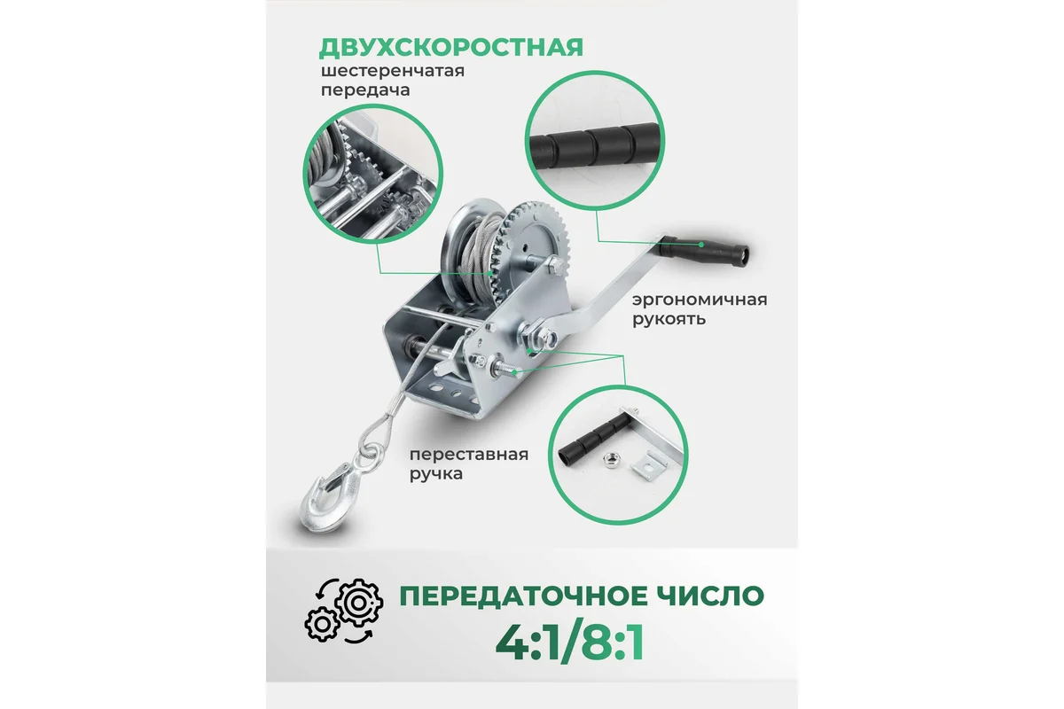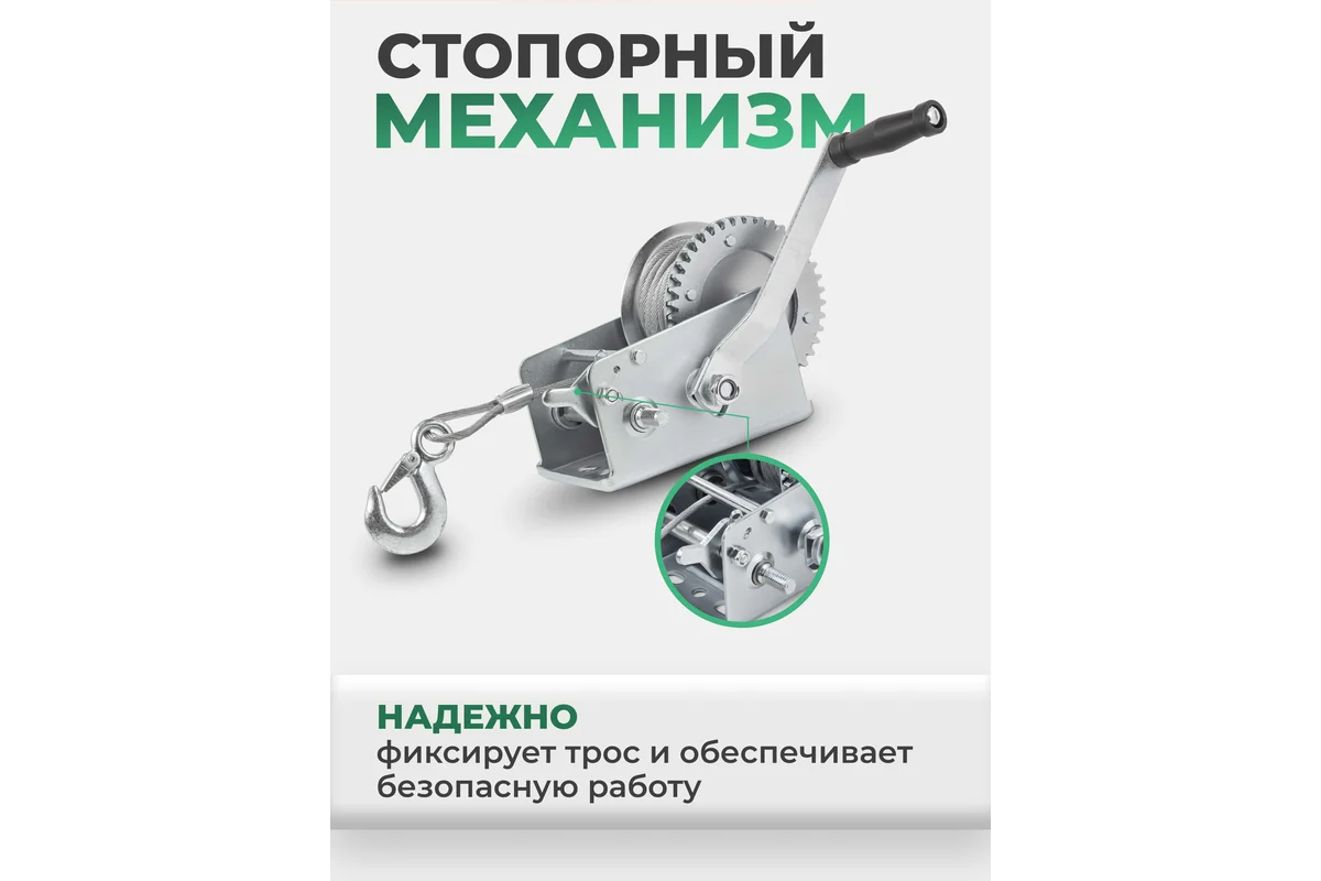Храповый механизм: Позволяет стопорить лебедку и предотвращает самопроизвольное проворачивание барабана под нагрузкой.