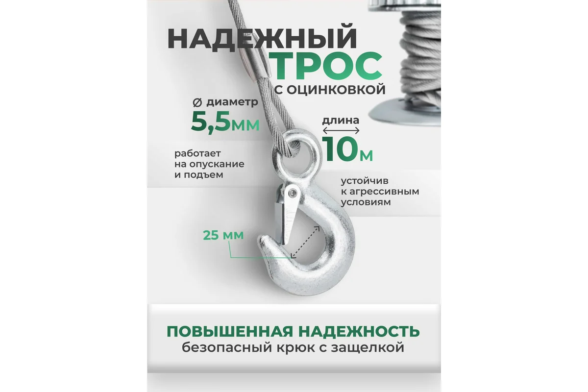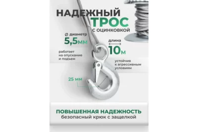 Удобство использования: Трос не нужно распрямлять при накручивании на барабан, что упрощает работу.