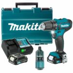 Аккум. дрель-шуруповерт MAKITA DF 333 DWYE4 в чем. + набор бит снабжена быстрозажимным патроном, благодаря чему смена оснастки не занимает много времени. Имеет 20 ступеней крутящего момента и позицию сверления, что расширяет спектр её применения. Через вентиляционные отверстия поступает достаточно воздуха, что охлаждает двигатель и предохраняет его от перегрева. Двухскоростной редуктор. Есть функция реверса. Электронная регулировка оборотов — для работы с разными материалами.