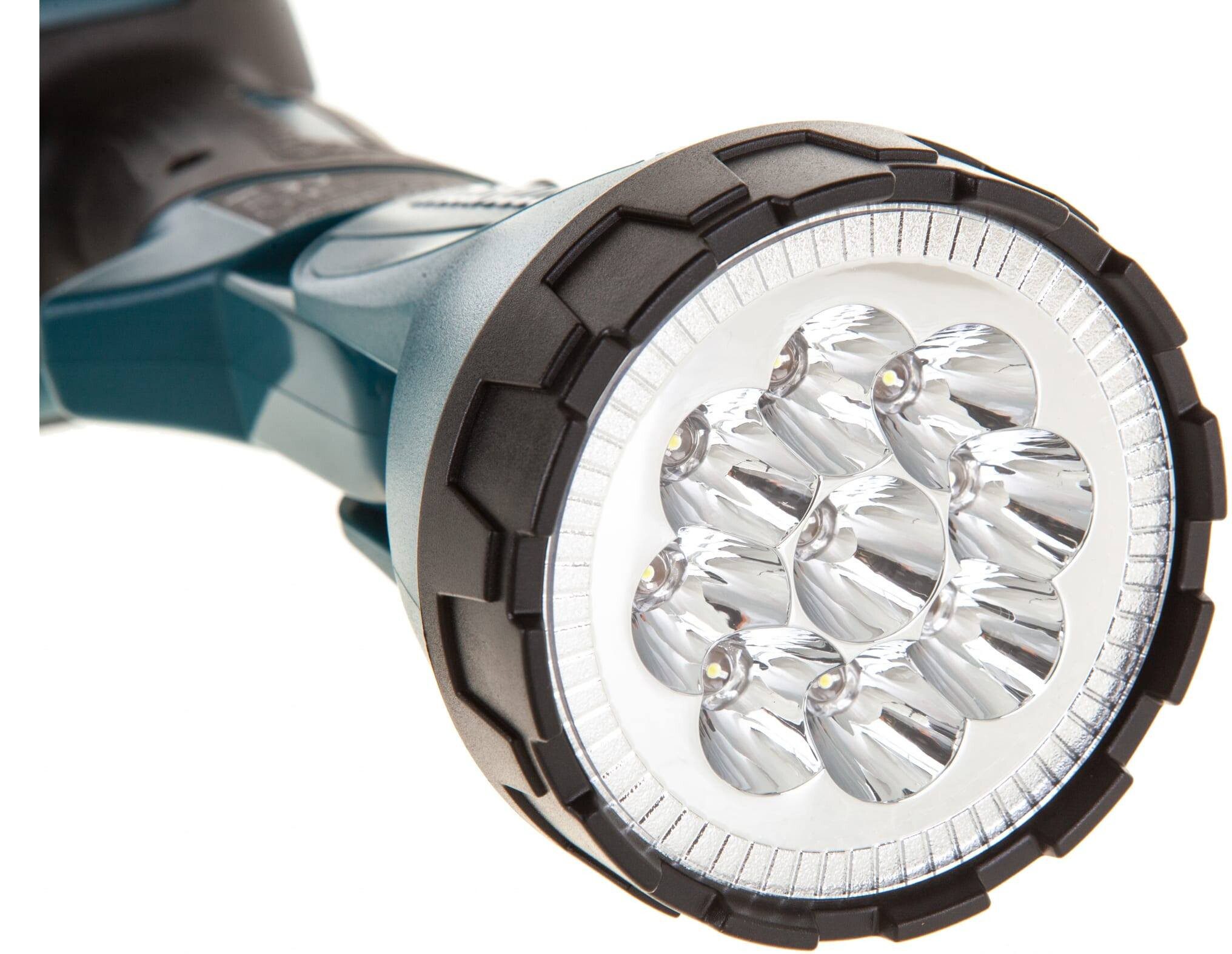 Фонарь аккумуляторный MAKITA используется для дополнительного освещения, например, при работе аккумуляторной дрелью, либо применяется как самостоятельный осветительный прибор. Питание 14.4/18 В фонаря обеспечивают литий-ионный аккумулятор G — типа и зарядное устройство базового инструмента. Преимуществом данного фонаря является упрочненный резиной корпус, способный защитить его конструкцию при случайном падении. Головная часть фонаря может принимать четыре положения — под углом 0˚, 45˚, 90˚ и 110˚, что значительно расширяет функциональные возможности данного прибора. Поставляется без аккумулятора и зарядного устройства.