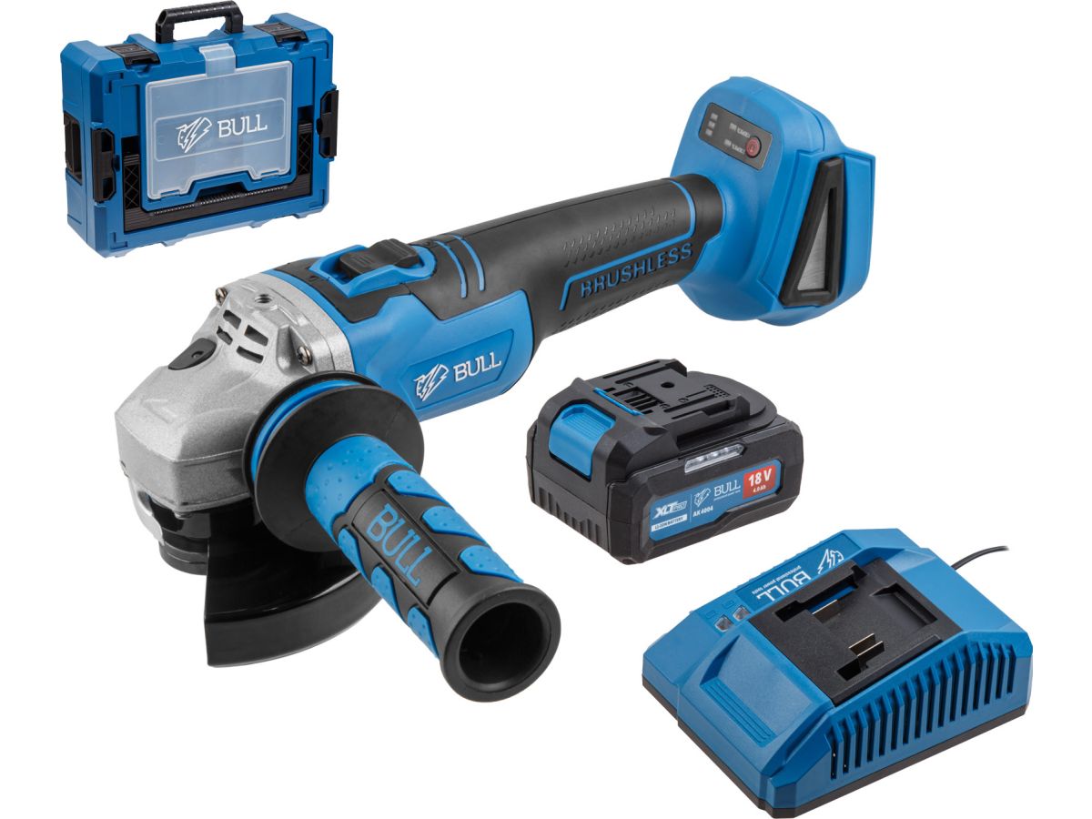 Шлифмашина угловая аккумуляторная BULL CSG 1812 R XLTpro Xcase (1333859) оснащена надежным бесщеточным двигателем, что продлевает срок службы как самого инструмента, так и аккумуляторов в 2 раза, снижает энергопотребление на 50%, делает инструмент компактнее, а работу продуктивнее, исключает необходимость замены угольных щеток.