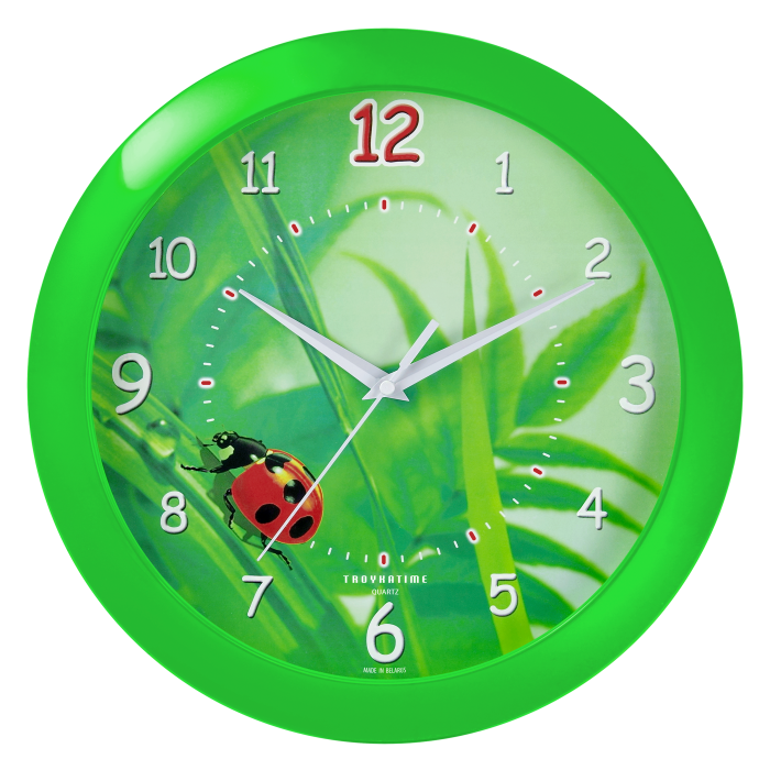 Часы настенные кварцевые TROYKATIME имеют пластиковый корпус.