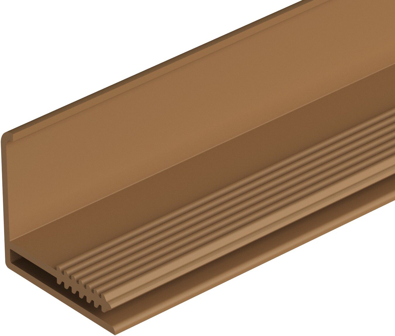 Профиль L-образный ПВХ DOCKE 3 м каштановый предназначен для закрытия торцов верхних панелей. Не всегда цоколь имеет высоту равную ширине фасадной панели, поэтому возможно применение как на заводской кромке так и отрезанной по высоте. Также способствует отводу воды от стены на цоколь и препятствует попаданию дождевой воды за цокольные панели.