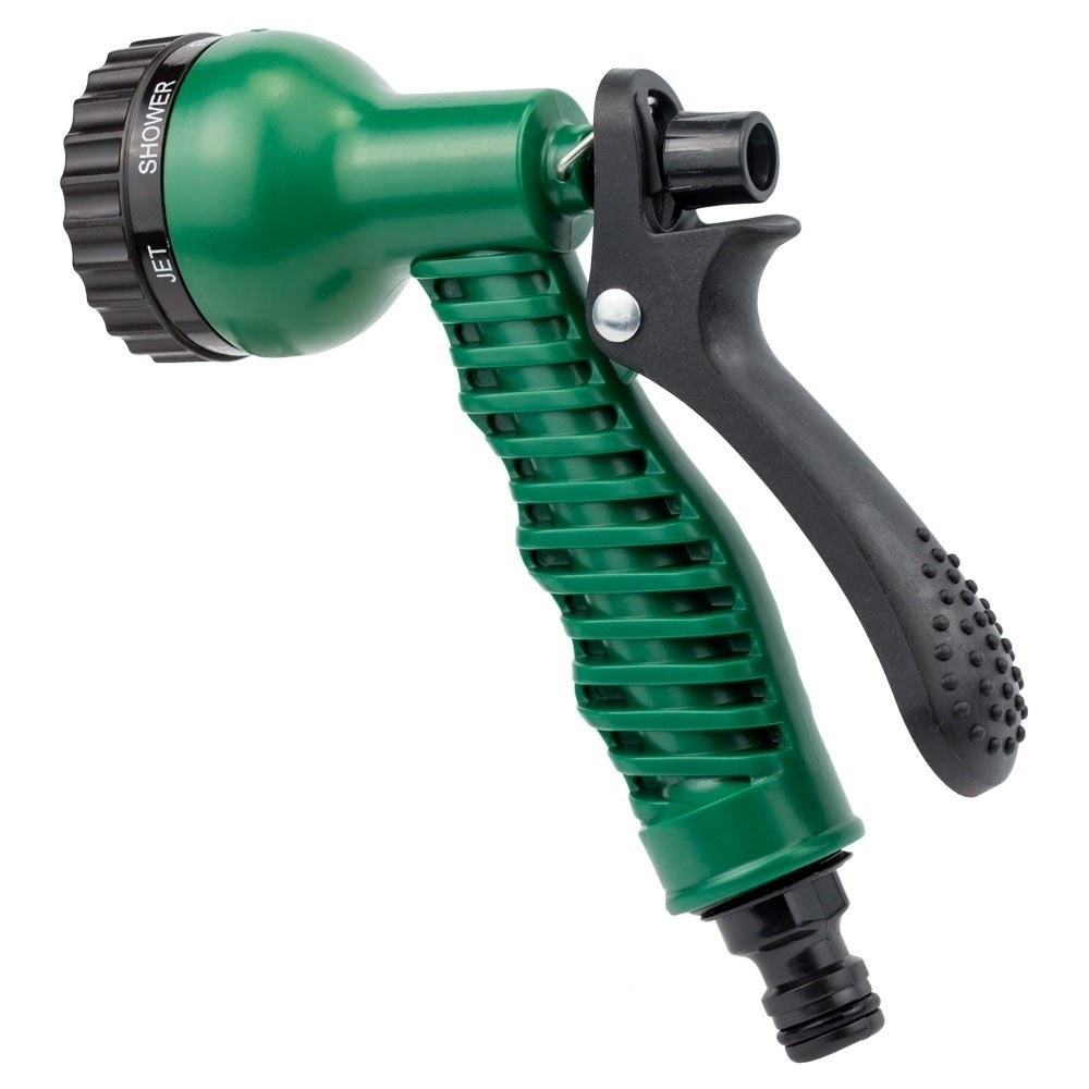 Душ-пистолет предназначен для направленного полива растений на садовом и дачном участке. Подсоединяется к шлангу через соединитель. Душ-пистолет Гринда предоставляет возможность выбора одного из 8 режимов распыления путем вращение специального регулятора над курком: жесткая струя, конус, слабая струя, центр, плоская струя, душ, аэрирование, вертикальный полив. Эргономичная рукоятка сделает работу не утомительной, а прочный пластиковый корпус обеспечит длительный срок службы. Покрытие термопластичной резиной делает работу более комфортной и исключает выскальзывание. Фиксатор струи значительно облегчает работу и снижает затрачиваемые усилия, нет необходимости зажимать курок, достаточно выбрать нужный режим полива и зафиксировать его. Также его можно применять для чистки мебели и садового оборудования.