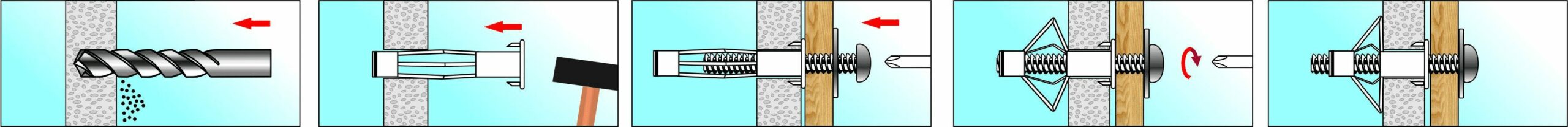 Дюбель металлический для пустотелых конструкций STARFIX изготовлен из оцинкованной стали, позволяет прикрепить различные элементы к листовым стройматериалам, а также к материалам с пустотами. Два острых зубца дюбеля не позволяют ему прокручиваться при монтаже. Металлическим дюбелем можно воспользоваться вторично с такой же надежностью фиксации. Монтируется предварительным способом монтажа. Диаметр сверления – 8 мм. Толщина перегородки — 15-32 мм.