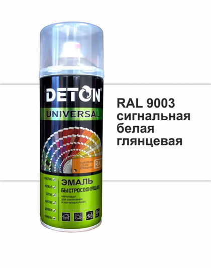 Универсальная быстросохнущая акриловая эмаль применяется для покраски изделий из металла, дерева, картона, пластика, бетона и камня. Цвета отколерованы в соответствии с европейским стандартом RAL. Время высыхания «на отлип» — 5 минут, время полного высыхания — 2 часа (при 20°С). Хорошая укрывистость и превосходная адгезия к окрашиваемой поверхности.