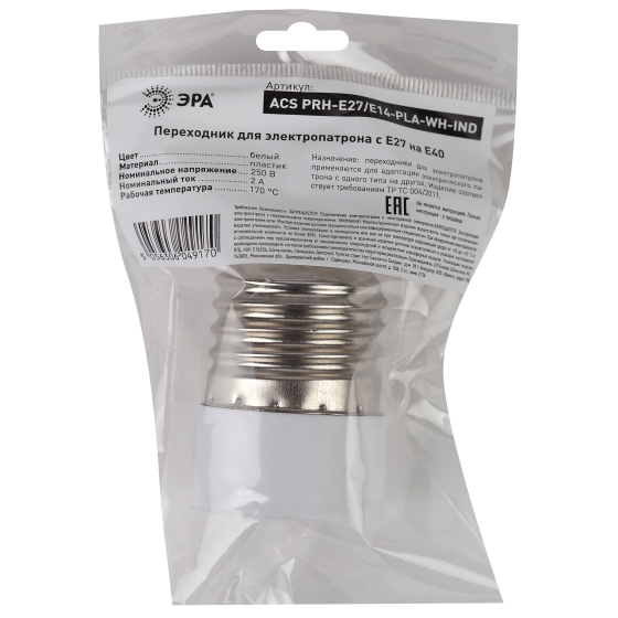 Переходник E27-E14 изготавливается из термостойкого пластика, материал химически устойчивый к агрессивным средам, обладает высокой прочностью и теплостойкостью.