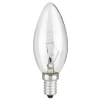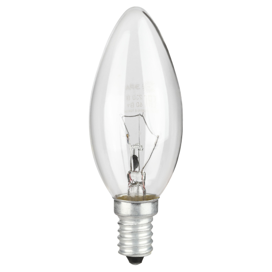 Лампа накаливания вольфрамовая для бытового и аналогичного общего освещения. Лампа с колбой в виде свечи используется для декоративного оформления светильника, придания ему законченного и совершенного вида. Она красиво смотрится, создавая эффект настоящей зажженной свечи, что привносит в интерьер комнаты более уютный, успокаивающий и «теплый» вид. Прозрачная колба лампы создана специально для эффектов абсолютно чистого, искрящегося света.
