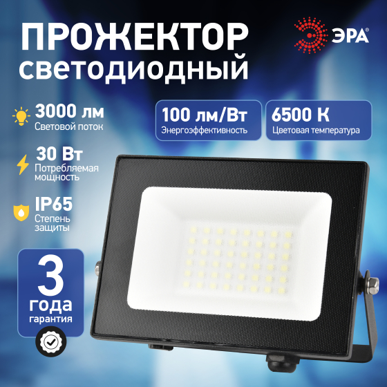 ЭРА LPR-062-0-65K-030 Прожектор светодиодный уличный PRO 30Вт 6500К 3000лм IP65 призма