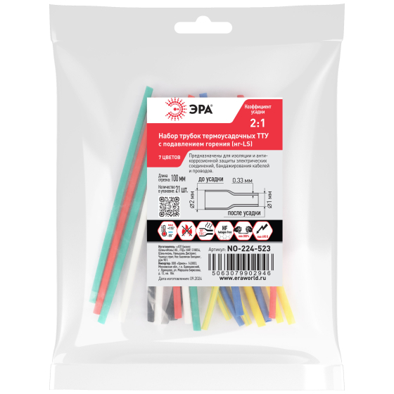 Общепромышленные термоусадочные трубки ТТУ нг-LS в розничных наборах представляют собой универсальное решение для изоляции и маркировки. Трубки изготавливаются методом экструзии из специального состава полиолефина с добавлением антипиренов, после чего нарезаются на отрезки по 10 см. Коэффициент термоусадки 2:1 обеспечивает надежную фиксацию и защиту, а широкая цветовая гамма и разнообразие диаметров позволяют подобрать оптимальный вариант для различных задач.