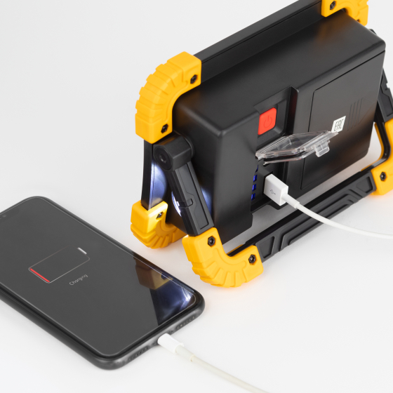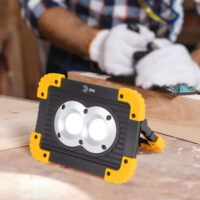 ЭРА PA-803 — стильный компактный фонарь-прожектор с двумя типами питания: от встроенного аккумулятора либо от двух пальчиковых батареек (2 х АА). Входит в специальную серию «Практик», созданную специально для рабочих профессий. Успешно применяется на стройках, при ремонте и монтаже. Станет вашим надежным помощником в быту, в поездках. Удобная поворотная ручка-подставка дает возможность регулировать направление света, фиксировать фонарь в различных положениях, подвешивать. Фонарь имеет двойной светильник из сверхъярких COB-светодиодов, а также боковой свет с направленным лучом (1 LED). Высокий световой поток — 860 Лм. 4 режима работы для разных задач: 1) боковой свет; 2) головной свет 100% яркости; 3) головной свет 50% яркости; 4) головной мигающий свет. Яркий необычный фонарь запоминающегося дизайна! Эргономичная прямоугольная форма, защитные вставки по углам, эффектная черно-желтая цветовая гамма.