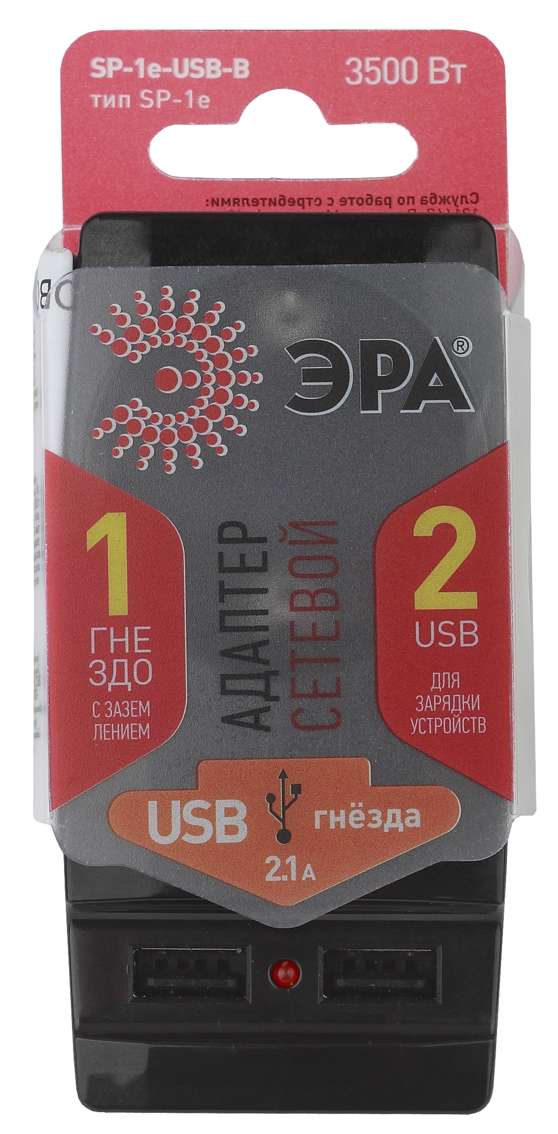 Адаптер ЭРА POLYNOM с розеткой и 2-мя USB гнездами для зарядки портативных устройств. Идеален для зарядки мобильных телефонов и планшетов. Незаменим с собой в дороге. Особенно актуален когда в помещении мало источников подключения — можно использовать обычную розетку и при этом ещё заряжать 2 устройства одновременно через USB. Максимальная мощность USB разъемов: 2100 мА.