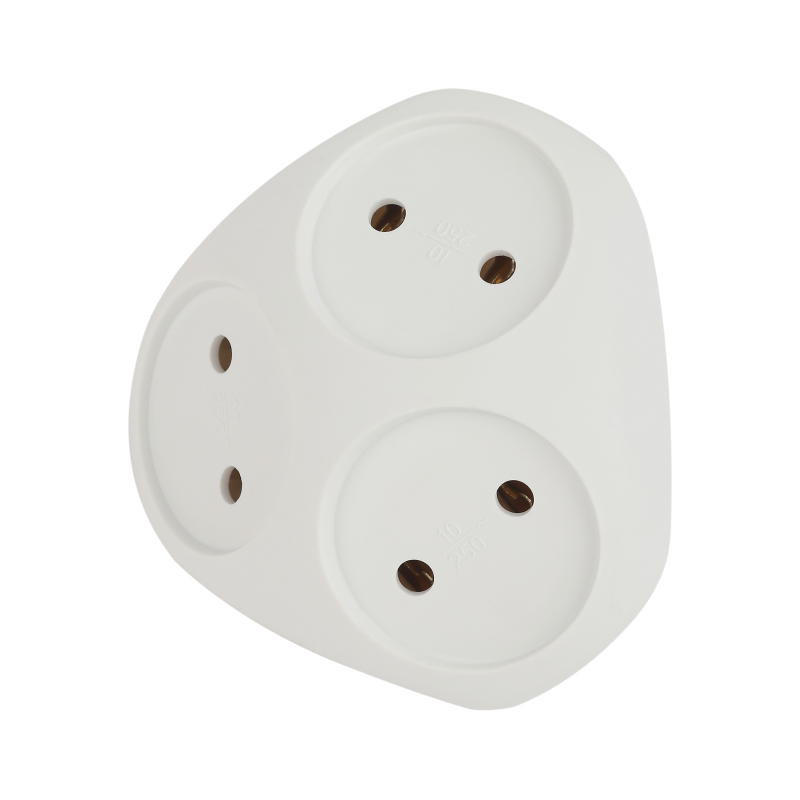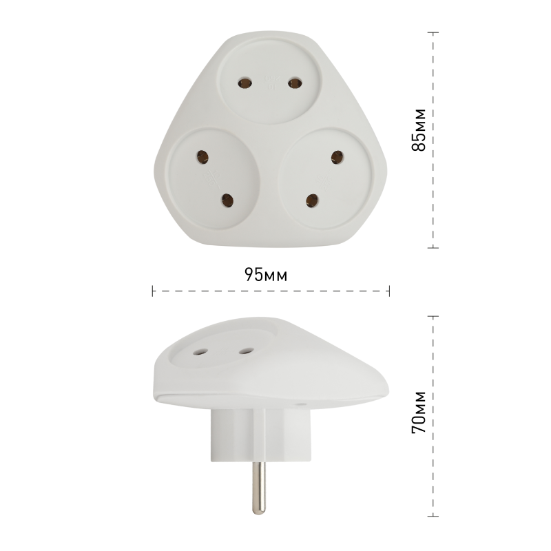 Сетевой разветвитель (тройник) ЭРА. Максимальная мощность — 10А/2200 Вт, материал корпуса — полипропилен (пластик премиум сегмента).