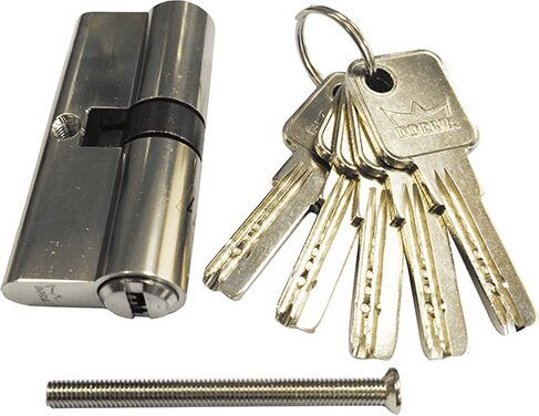 Евроцилиндр DORMA CBR-1 90 45×45 никель (7039000000047) рекомендуется при установке в помещениях с базовым уровнем безопасности. Корпус цилиндра изготовлен из алюминия, сердцевина из латуни. Кодовая часть цилиндра состоит из 6 латунных пинов (стопорные пины выполнены в форме «гантели»). В комплекте 5 стальных, перфорированных ключей. Количество секретных комбинаций более 15 000, длинная шейка ключа подходит для установки с броненакладками. Положение покоя кулачка — 30° относительно профиля цилиндра, для предотвращения выхода цилиндра из ключевого отверстия и защиты от его выбивания.