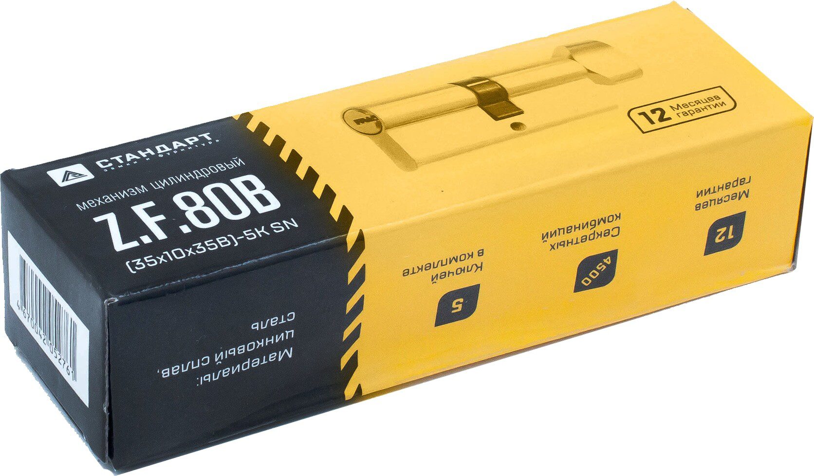 Евроцилиндр с вертушкой СТАНДАРТ Z.F.80В-5K 40×40 SN матовый никель (12227) предназначен для врезных замков. Выполнен из стали и цинкового сплава. Выступающий на 30 градусов из плоскости механизма кулачок защищает цилиндр от выбивания из двери.