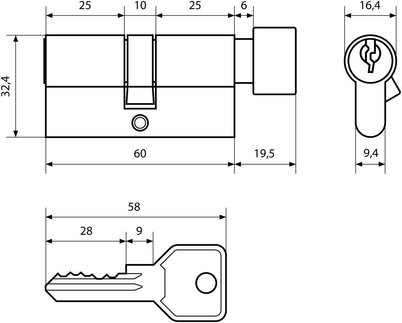 Евроцилиндр с вертушкой СТАНДАРТ Z.I.60В-5K 30х30 CP хром (9915) предназначен для врезных замков. Выполнен из стали и цинкового сплава. Имеет 5 пинов.