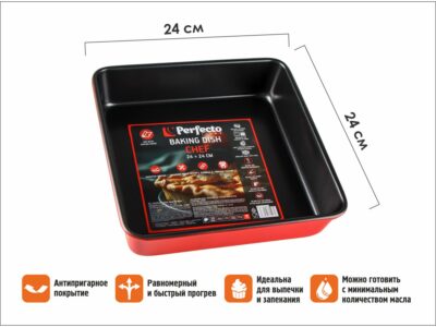 Форма для выпечки металлическая квадратная 24х24 см PERFECTO LINEA Chef (16-232385) – профессиональные формы для духовых шкафов, созданные для идеальной выпечки. Изготовлены из высококачественной углеродистой стали с антипригарным покрытием, которое предотвращает прилипание и пригорание продуктов. Рекомендуется использовать с силиконизированной бумагой для достижения наилучшего результата. Легко моются и подходят для посудомоечных машин. Идеальный выбор для домашней и профессиональной кулинарии.