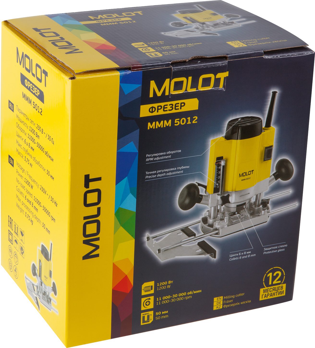 Фрезер MOLOT MMM 5012 (MMM501200019) — это высокопроизводительный фрезер с мощным мотором и регулировкой оборотов скорости в зависимости от материала. Возможно подключение к пылесосу для отбора стружки и пыли. Выбор глубины обработки 0-50 мм обеспечивает легкое проникновение вглубь заготовки или сквозь нее, так же имеется более точная настройка глубины. Возможно устанавливать фрезы с диаметром хвостовика 6, 8 мм. Эргономичные рукоятки с мягкими накладками. Легкое управление кнопкой фиксации на необходимой глубине обработки.