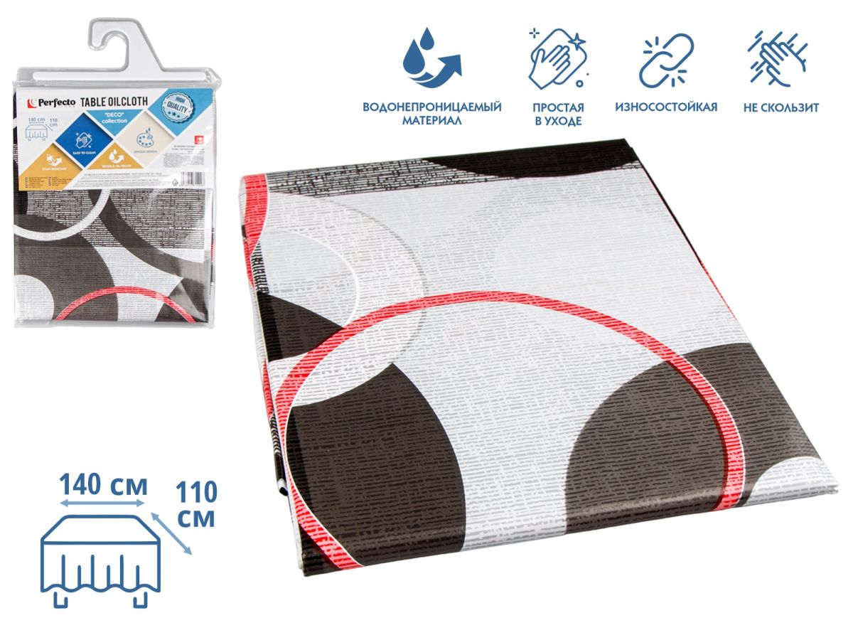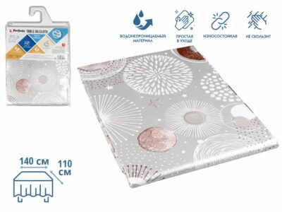 Клеенка столовая 140х110 см PERFECTO LINEA Deco (11-165288) изготовлена на нетканой основе с влагонепроницаемым ПВХ-покрытием. Декоративная клеенка является прекрасным дополнением для гостиного и кухонного интерьера.