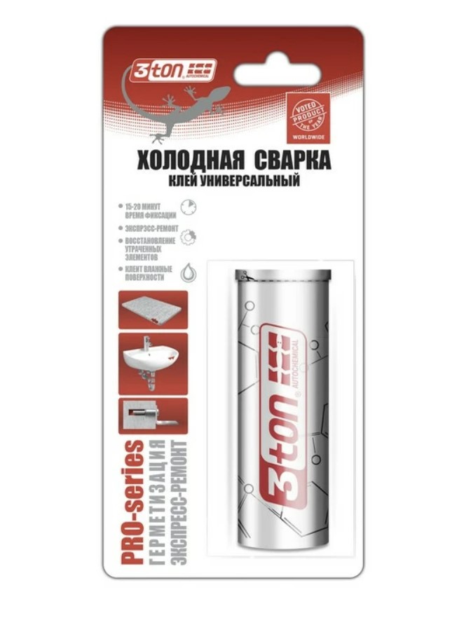 Клей универсальный TP-106 3TON, 55гр., арт. 55354 предназначен для быстрого и надежного склеивания, ремонта деталей и узлов, герметизации соединений и емкостей, для восстановления утраченных фрагментов изделий из черных и цветных металлов, пластмасс, керамики, дерева в различных комбинациях. Температура эксплуатации отремонтированных изделий от -60°С до +150°С. Обеспечивает надежный ремонт на влажных и замасленных поверхностях, при низких (до -10°С) температурах (при условии замешивания смеси в теплом помещении).