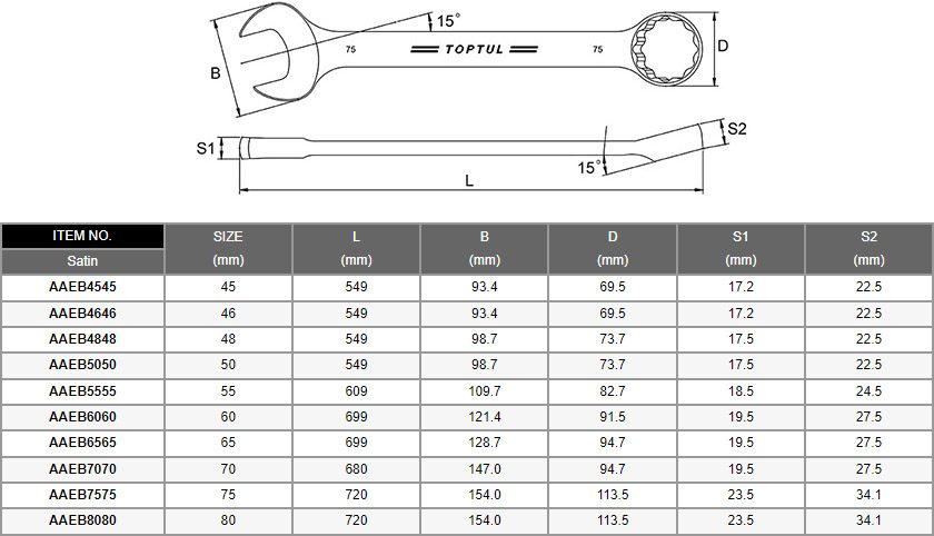 Ключ комбинированный TOPTUL имеет окончание в виде рожкового ключа размером 8 мм с одной стороны и окончание в виде накидного ключа размером 8 мм с другой стороны. Оба окончания ключа имеют смещение 15° по отношению к рукоятке. Рекомендуется для профессионального использования.