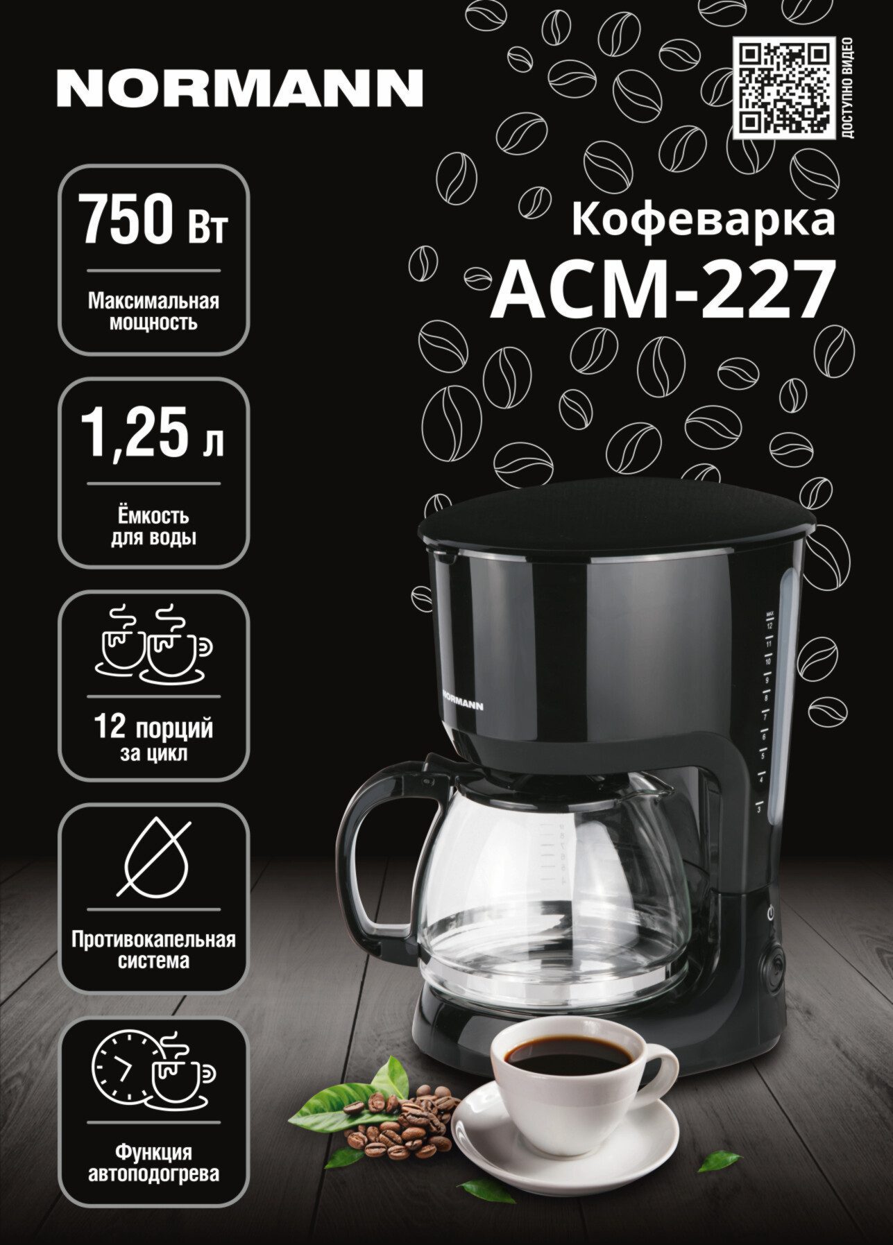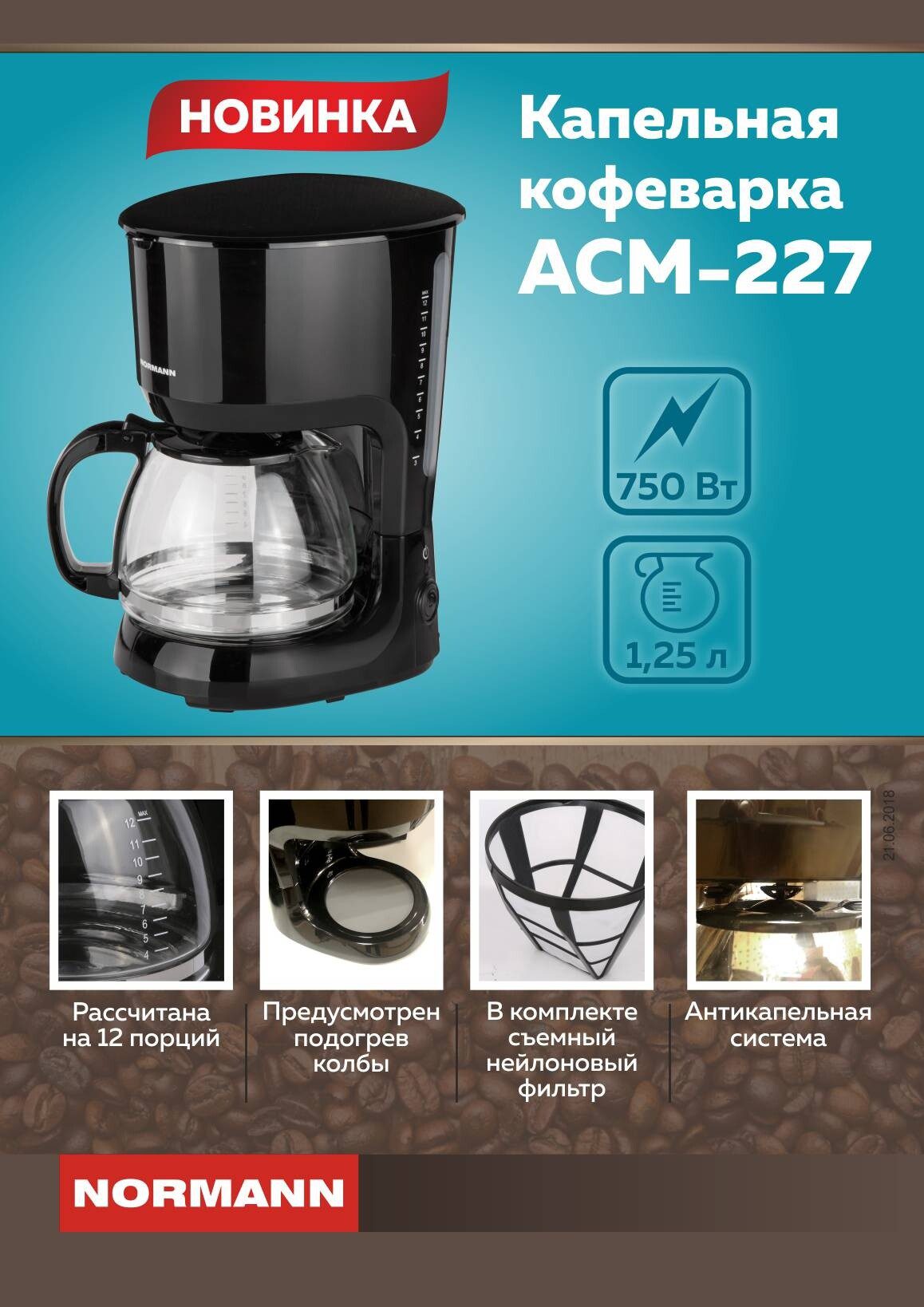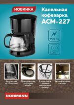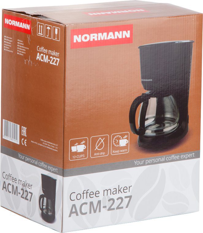 Кофеварка NORMANN ACM-227 – капельного типа с колбой на 12 порций кофе.