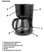 Комплектация: кофеварка, колба, фильтр, мерная ложка, руководство по эксплуатации.