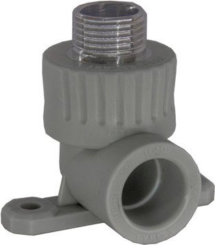 Угольник полипропилен 20х1/2″ наружная резьба комбинированный с креплением серый РосТурПласт (11056) применяется при монтаже систем отопления и водоснабжения и служит для присоединения полипропиленовой трубы к компоненту системы с внутренней резьбой под углом 90 градусов друг к другу. Угольник изготовлен в соответствии с ГОСТ 32415-2013 и может выдерживать давление до 25 бар. Закладные детали выполнены из высококачественной латуни типа ЛС-59-2 с пониженным содержанием свинца.