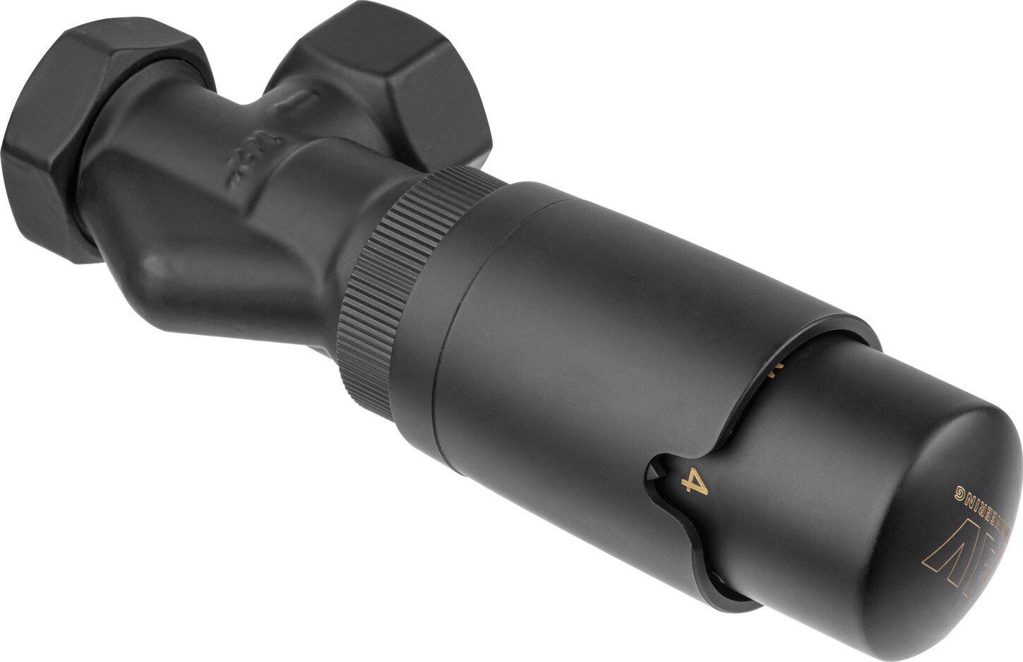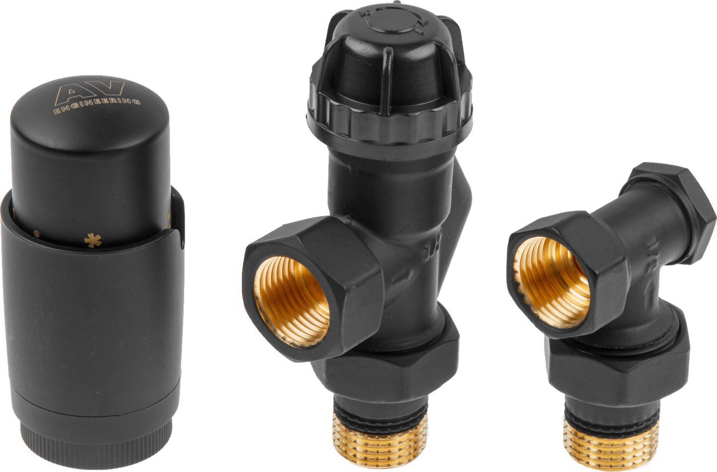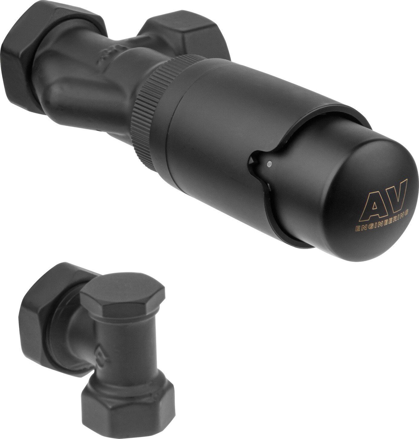 Комплект кранов для радиаторов 1/2 осевой черный AV ENGINEERING (AVE32012B) — термостатический комплект запорных кранов для радиаторов отопления в осевом исполнении, т.е. после подключения термоголовка будет расположена по оси радиатора, параллельно стене.В современных системах отопления часто оказывается недостаточно просто управлять температурой теплоносителя на подаче из котла. Температура в различных помещениях дома по факту может значительно отличаться. Для примера, в комнатах на южной и северной стороне дома температура существенно отличается, также изменения реальной температуры в комнате происходят в течении дня из-за изменения погоды. Для того, чтобы использовать тепло только тогда, когда это необходимо и в оптимальных объемах, один из вариантов это поставить на каждый радиатор комплектом термостатических клапанов AV Engineering. Такое решение позволит производить регулировку температуры в каждом отдельном помещении и поддерживать ее на установленном уровне.Как работает термостатический комплект осевых кранов AV Engineering?Изменение температуры в комнате приводит к изменению объема жидкости в сенсоре, находящемся внутри термоголовки и как следствие, перемещается шток радиаторной термоголовки, обеспечивая открытие или закрытие клапана и изменение объема теплоносителя, поступающего в радиатор. В процессе работы, при достижении необходимой температуры в комнате, термоголовка плавно закрывает клапан, позволяя протекать только небольшому количеству отопительной жидкости через радиатор, для поддержания в комнате заданный уровень температуры.Радиаторные краны AV Engineering соответствуют строгим европейским стандартам.