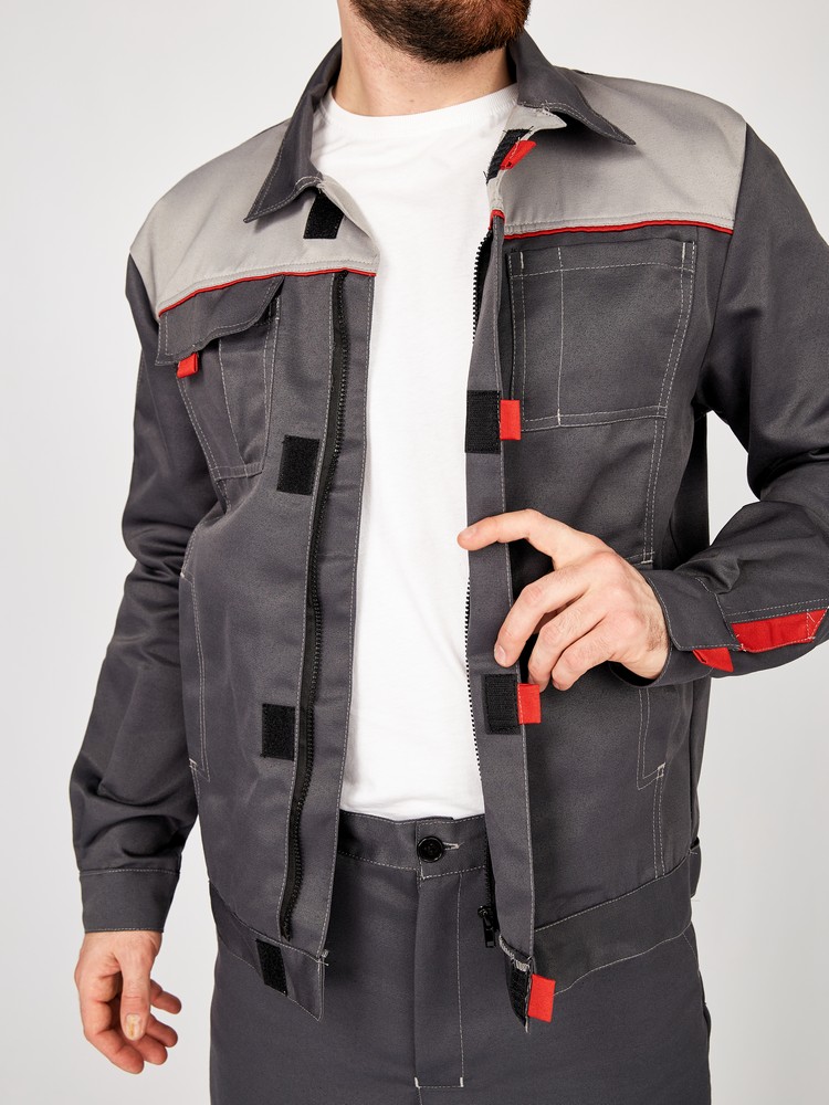Карманы. Куртка: с верхними накладными и нижними карманами в швах. Полукомбинезон: на нагруднике двойной накладной карман с клапаном на контактной ленте, малый накладной карман разделён на три части; боковые накладные карманы с наклонной линией входа; на задней половинке фигурный накладной карман; двойной карман для инструментов.