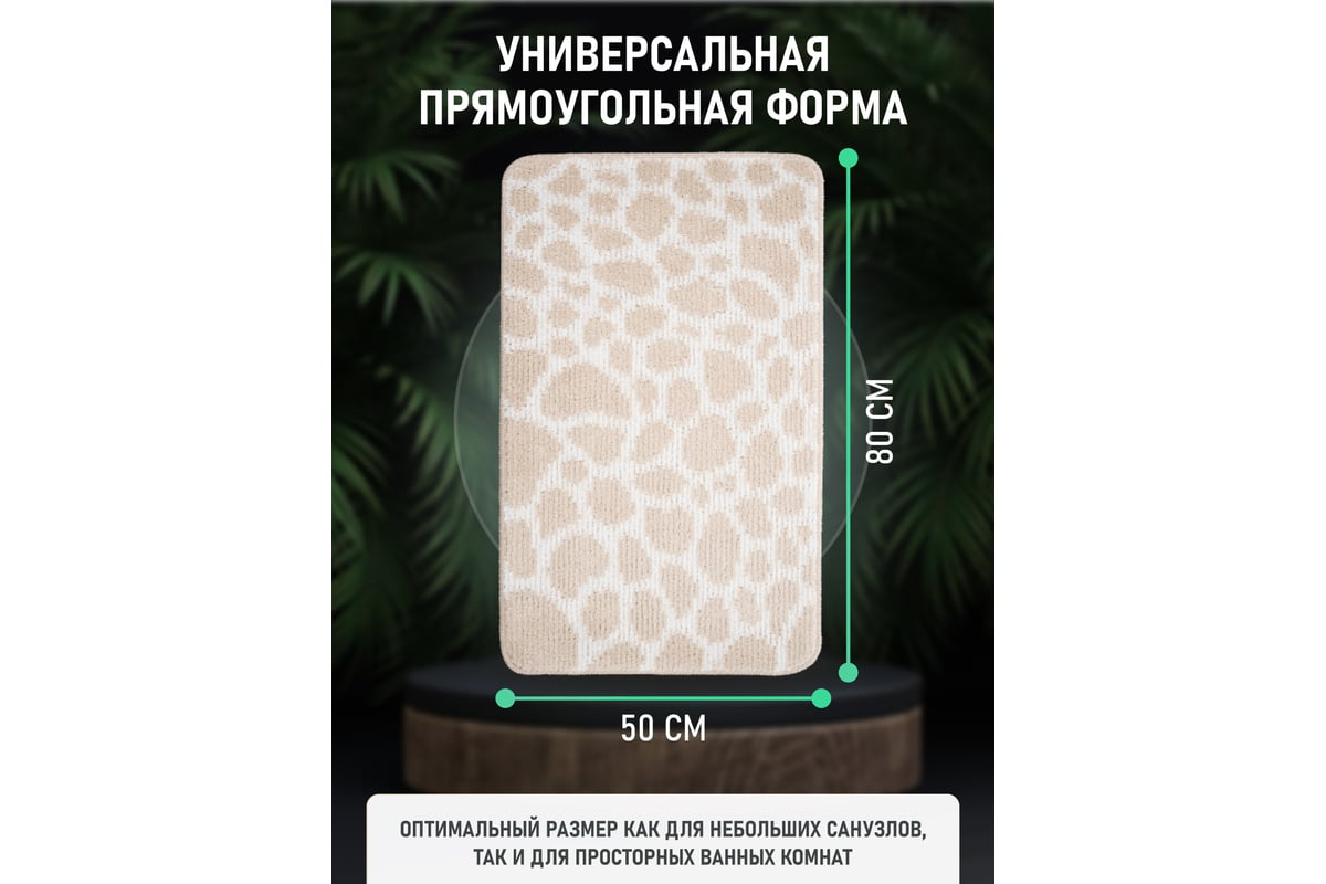 Коврик для ванной комнаты «Line Natural» классической прямоугольной формы 80×50 см — эффектный, практичный, комфортный аксессуар. Приятное пастельное сочетание белых и бежевых линий сделает помещение просторней. Нейтральная палитра оттенков гармонично сочетается с дизайном в разных стилистических и цветовых решениях.