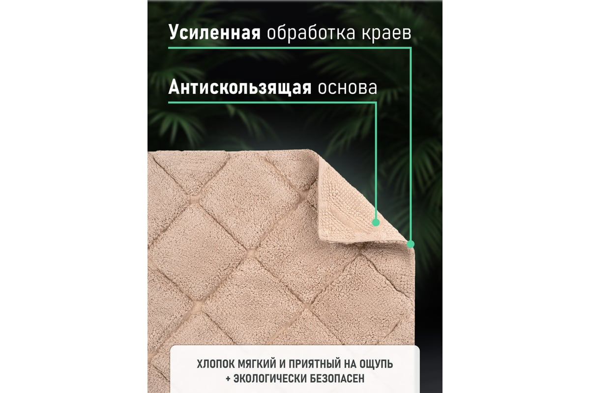 Коврик для ванной комнаты прекрасно дополнит интерьер и создаст уют в ванной комнате и санузле. Аксессуар выполнен из экологически безопасного натурального хлопка. Мягкий и приятный на ощупь коврик прямоугольной формы имеет антискользящее латексное напыление и устойчив к износу.