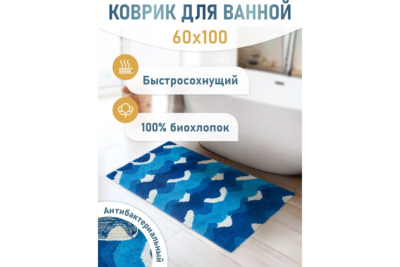 Коврик одинарный «Волны» прекрасно дополнит интерьер и создаст уют в ванной комнате и санузле. Экологически безопасный и антибактериальный материал биохлопок, из которого выполнен аксессуар, не пахнет и не вызывает аллергию.