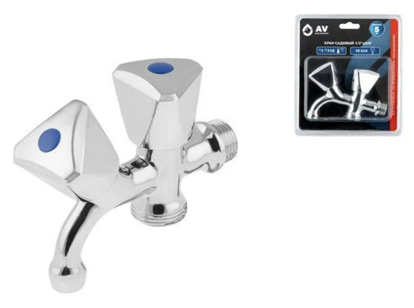 Кран садовый 1/2″ нар. х 3/4″ нар., AV Engineering (инд. упак.) применяется в системах полива сада или огорода. Имеет штуцер для присоединения садового шланга.