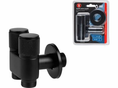 Кран вентильный угловой 1/2″ AV ENGINEERING черный (AVE258002) — предназначен для соединения элементов технического водопровода и отопления. Не предназначено для хозяйственно-питьевого водоснабжения. Преимущества: сразу 2 точки водоразбора.