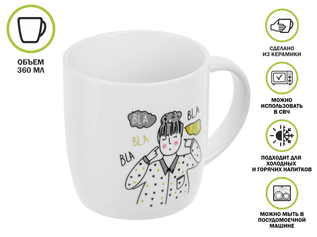 Кружка керамическая PERFECTO LINEA Lifestyle-1 360 мл (30-250401) — подходит для подачи горячих и холодных напитков. Керамика отличается высокой экологичностью. Допускается применение при любой температуре: холодильник, разогрев в микроволновой печи. Неустойчива к перепадам температуры. Можно мыть в посудомоечной машине.