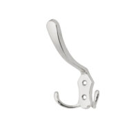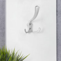 Трехрожковый металлический настенный крючок. Крючок может использоваться как в гардеробных, так и ванной комнате. Крючок имеет стильный минималистичный дизайн, который подойдет практически к любому стилю интерьера. Верхний рожок в основном предназначен для головных уборов, нетяжелых вещей. Крепится с помощью саморезов. В комплекте 2 самореза 4×18.
