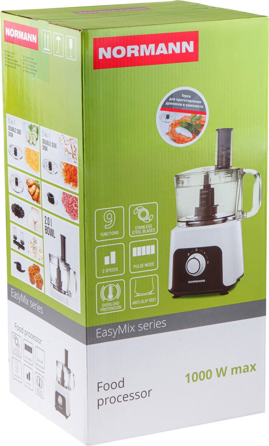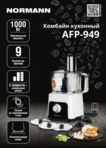 Комбайн кухонный NORMANN AFP-949 с 9-тью различными функциями станет отличным помощником на кухне, выполняя большой спектр возложенных на него задач. Имеет импульсный режим и два режима скорости. Большая чаша чоппера с рабочим объемом 1,2 л. Острый двухлопастной нож-измельчитель. Защита двигателя от перегрузки. Прорезиненный ножки обеспечивают устойчивость прибора на кухонном столе. Комбайн оснащен электродвигателем, вал которого выполнен из стали.