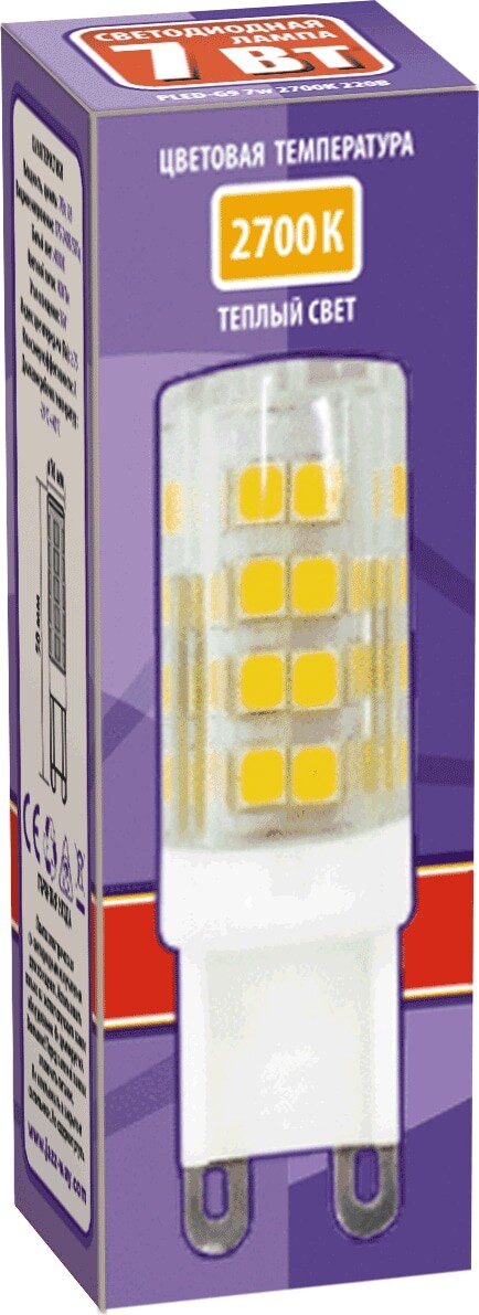 Лампа светодиодная G9 JAZZWAY PLED 7 Вт 2700К (1039064B) повторяет форму и размеры стандартных галогенных капсюльных ламп и идеально подходит к различным светильникам, в которых используются данные типы ламп. PLED-G9 7W – увеличенный световой поток. Материал корпуса ламп PLED‑G9 7W: эпоксидная смола.