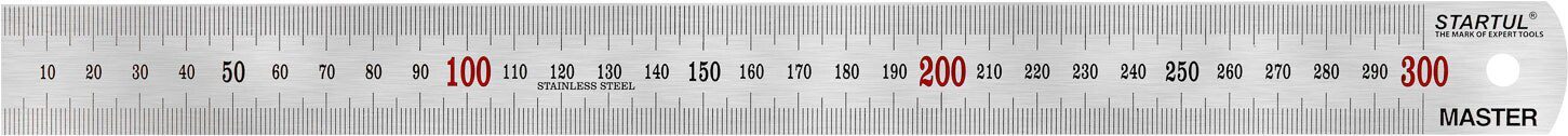 Линейка измерительная 300 мм STARTUL Master (ST3500-030) изготовлена из нержавеющей стали. Используется при проведении измерительных и разметочных работ. Нанесена двойная шкала деления в см/мм. Шкала двухсторонняя. Метод нанесения шкалы: травление. Цена деления: 1 мм. Линейка упакована в пластиковый чехол.