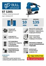 Электролобзик BULL ST 1301 (20046329) оснащен удобной, эргономичной прорезиненной рукояткой. Наличие маятникового движения с направляющим роликом позволяет производить быстрые и при этом ровные пропилы. Литая алюминиевая подошва регулируется под разными углами. Есть защитная пластиковая накладка для подошвы. Возможно подключение пылесоса. Регулировка скорости позволяет использовать лобзик для реза различных материалов. Лобзик также оснащен подсветкой. Удобству работы способствует длинный резиновый кабель.
