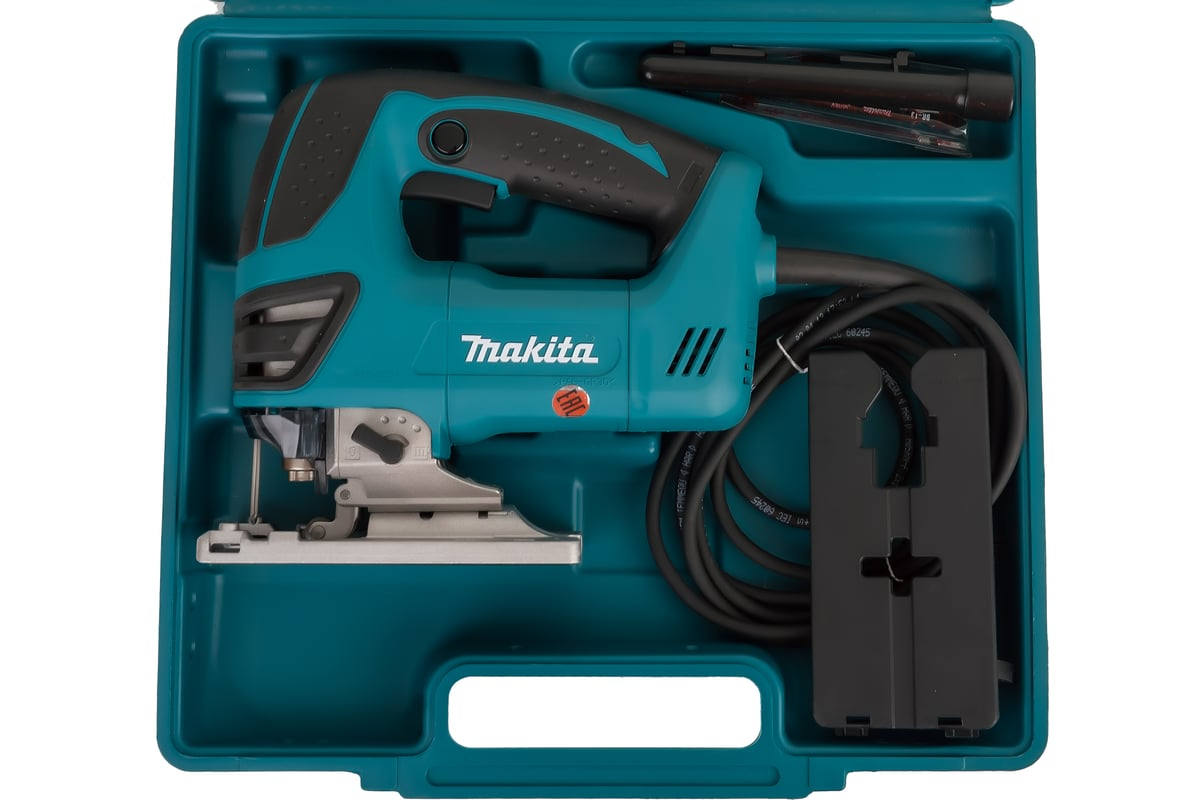 Электролобзик MAKITA 4350 СТ (4350CT) профессиональный инструмент для распила различных материалов: древесины до 135 мм, пластика, металла до 10 мм и других твердых материалов. Удобная D-образная рукоятка с резиновыми вставками. Возможность применения утолщенных пилок (1,7 мм). Низкая вибрация. Система противовеса балансировки снижает вибрацию. Уменьшение вибрации позволяет оператору чувствовать себя более комфортно при резке различных заготовок. Прозрачный защитный кожух. Электронная регулировка скорости. 3-х ступенчатый маятниковый ход + прямая резка.