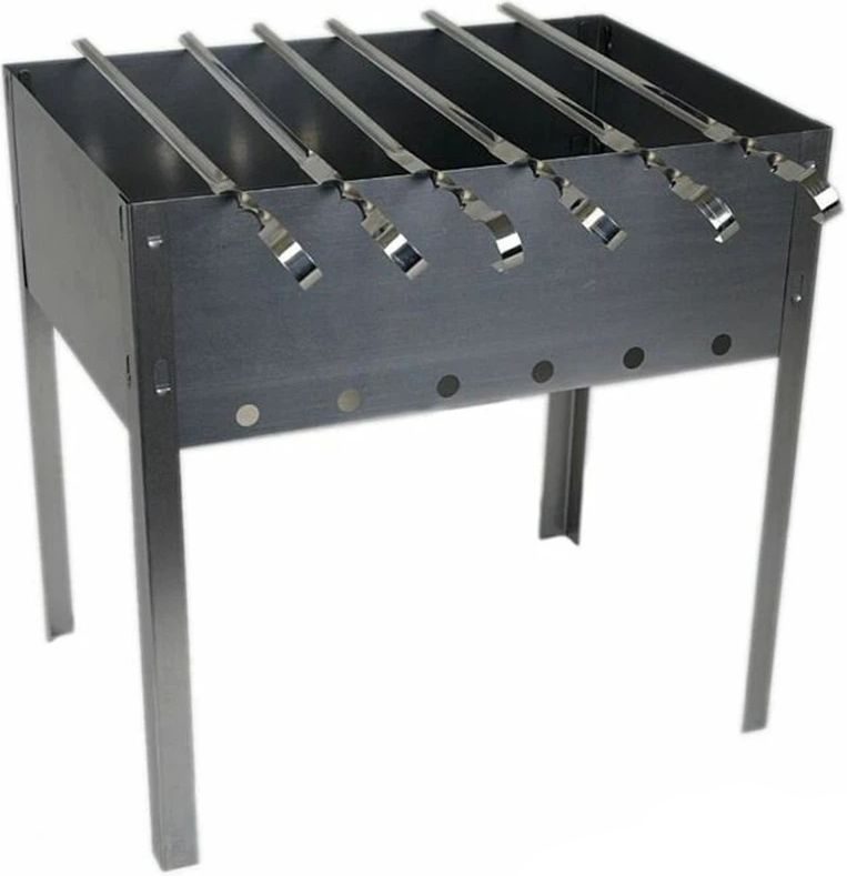 Мангал ШАШЛЫЧОК сборный 50х30х50 см и шампуры 6 штук (50069) изготовлен из листовой стали толщиной 0,8 мм. Мангал позволит приготовить еду на открытом воздухе, используя древесный уголь или дрова. Простота конструкции позволяет осуществлять быструю сборку. Полностью разборная конструкция мангала позволяет без проблем перевозить его в машине. В комплекте 6 шампуров.